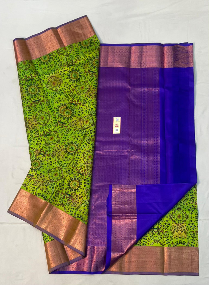 Colorful kalamkari pure kanchipuram silk saree